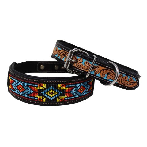 $329.00 – $499.00Price range: $329.00 through $499.00Dog Collar Beaded 100% Leather Heavy Duty Padded Hand Tooled