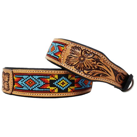 $329.00 – $479.00Price range: $329.00 through $479.00Dog Collar Beaded 100% Leather Heavy Duty Padded Hand Tooled