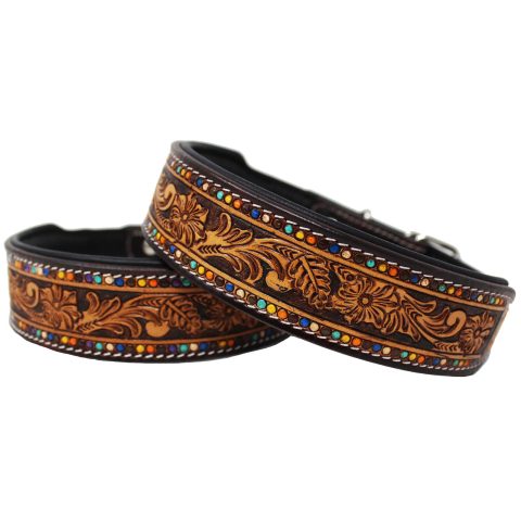 $329.00 – $479.00Price range: $329.00 through $479.00Dog Collar Beaded 100% Leather Heavy Duty Padded Hand Tooled