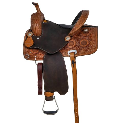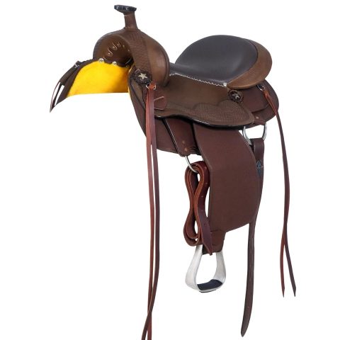 This beautiful classic western saddle is perfect for out on the trails or working the ranch! It is time to ride this beautiful western saddle . This saddle is perfect choice to attract attention . Wood and fiberglass tree is light weight and well made to ensure the strength.