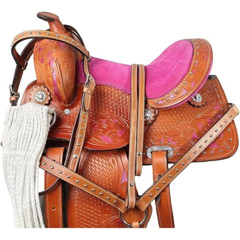 Western Barrel Racing Horse Saddle Pleasure Trail Floral Tooled Leather Rodeo Cowboy Tack Set (Copy)