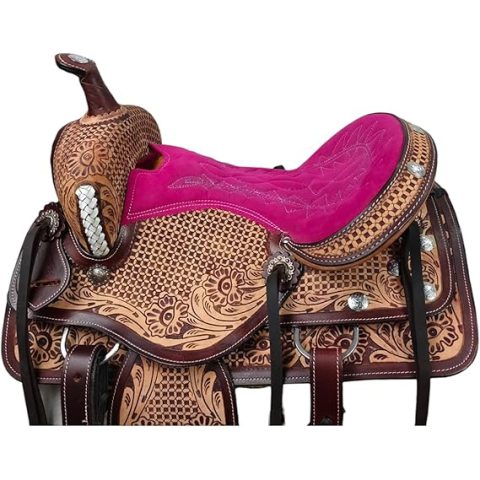 This beautiful classic western saddle is perfect for out on the trails or working the ranch! It is time to ride this beautiful western saddle . This saddle is perfect choice to attract attention . Wood and fiberglass tree is light weight and well made to ensure the strength.