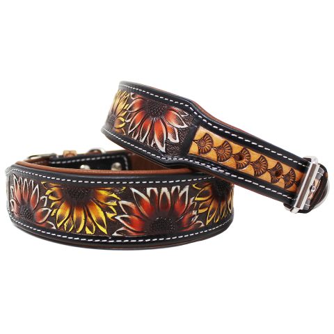 Dog Collar 100% Leather Heavy Duty Padded Hand Tooled