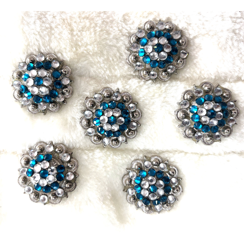 - PREMIUM DESIGN: Decorative Western saddle conchos featuring intricate floral pattern with crystal rhinestone accents, crafted from high-quality stainless steel