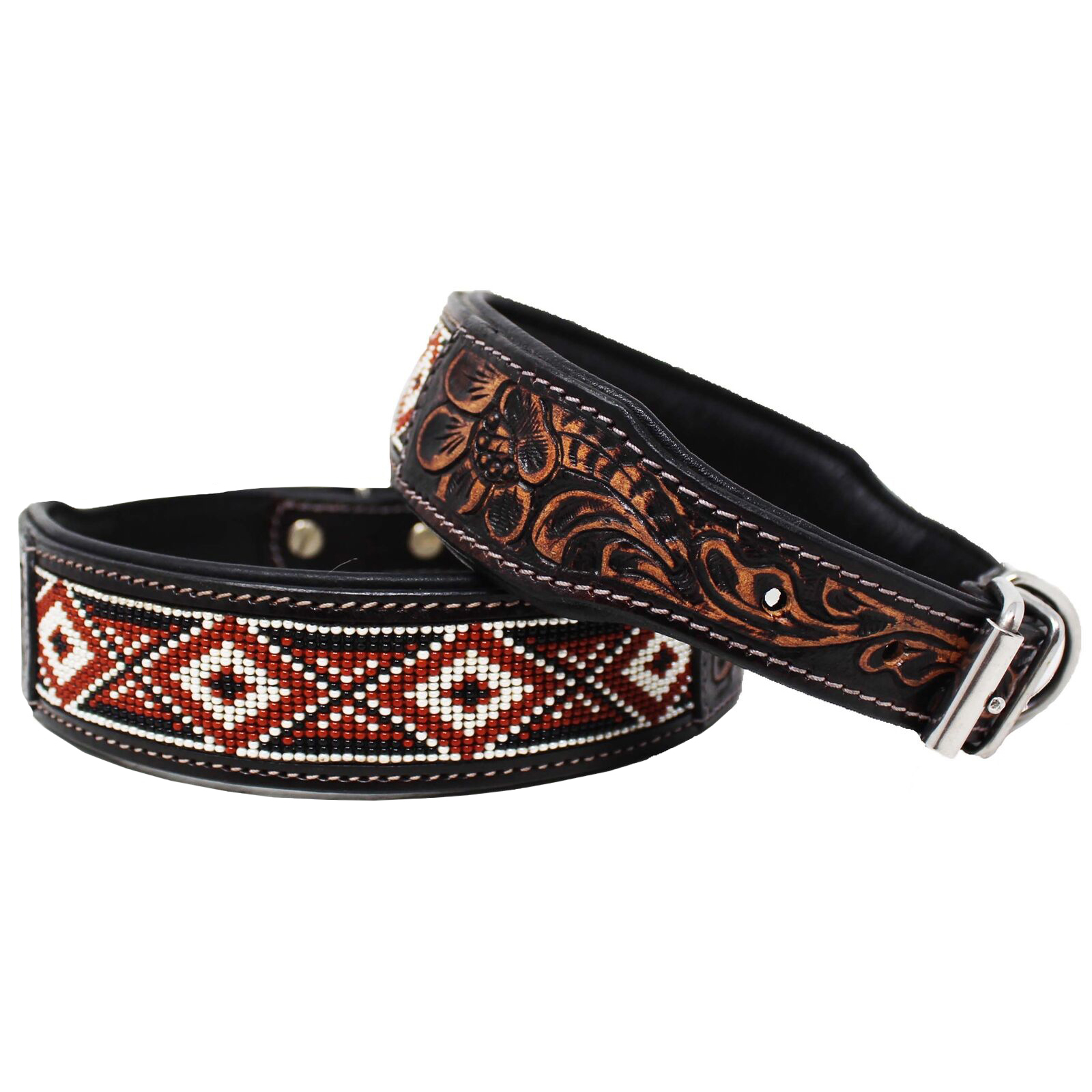 - Dog Collar 100% Cow Leather Heavy Duty Padded Leather Tooled