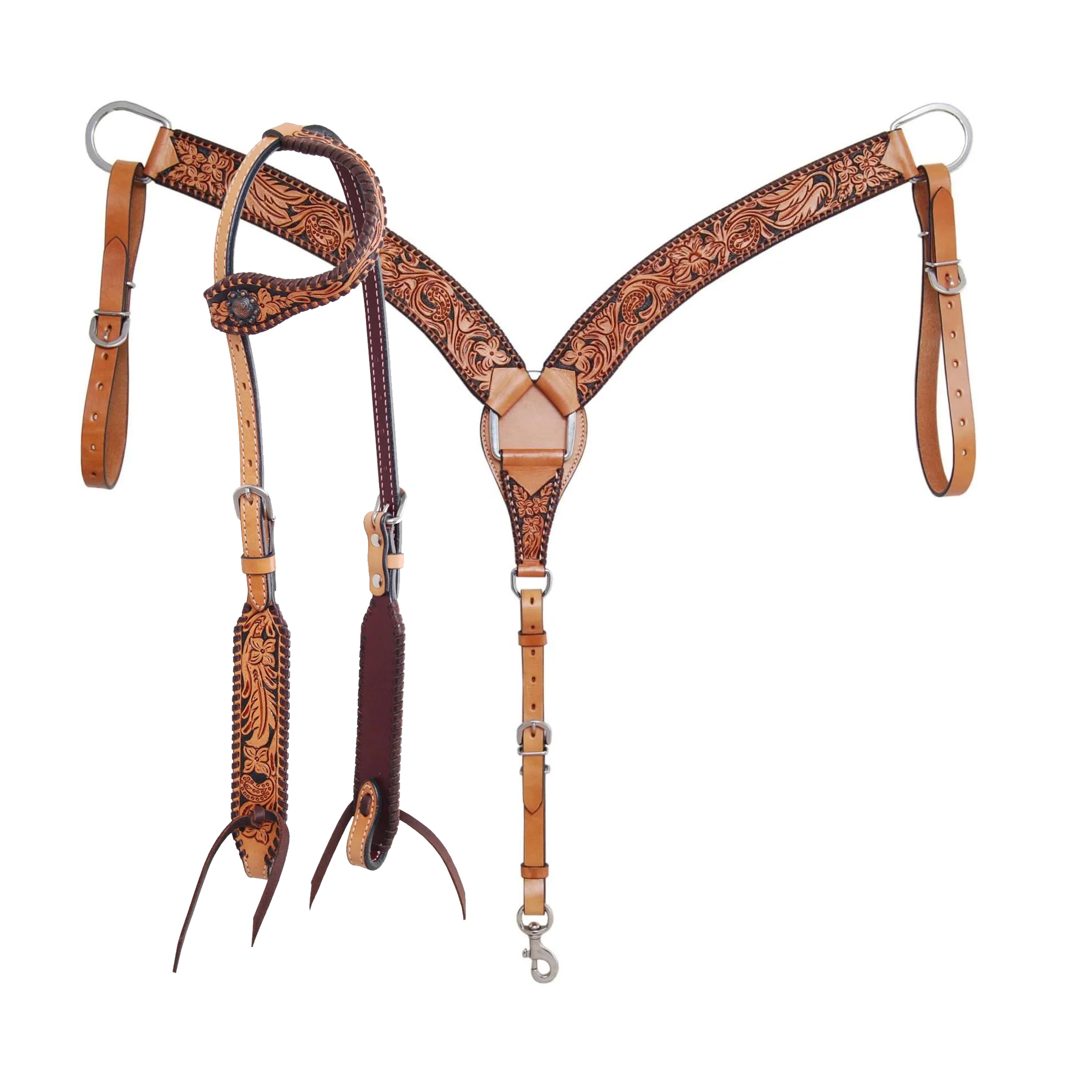 - Included In Package: Headstall, Breast Collar & Reins Set.