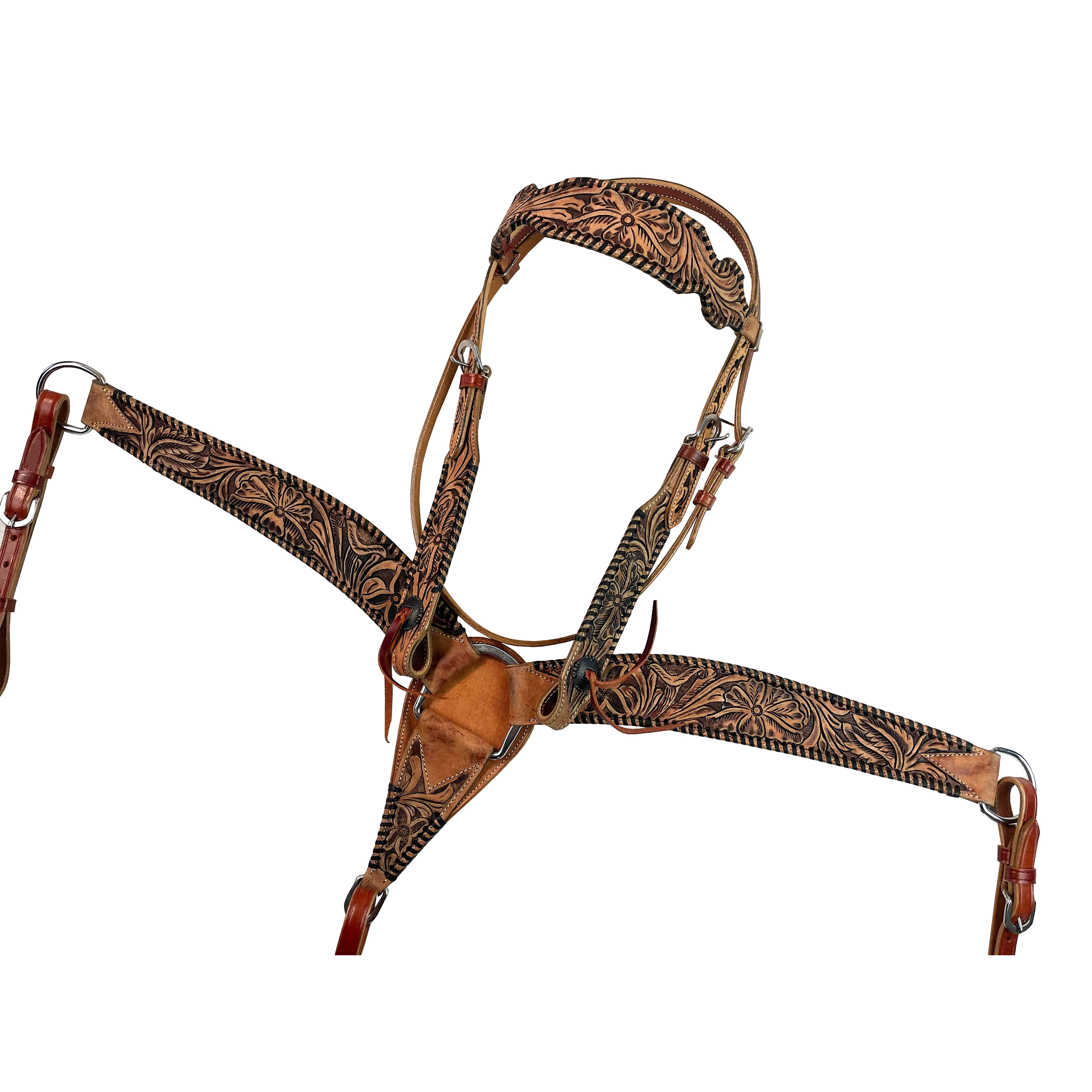 Western Horse Headstall Breast Collar Set Genuine Leather Floral Tooled Handmade