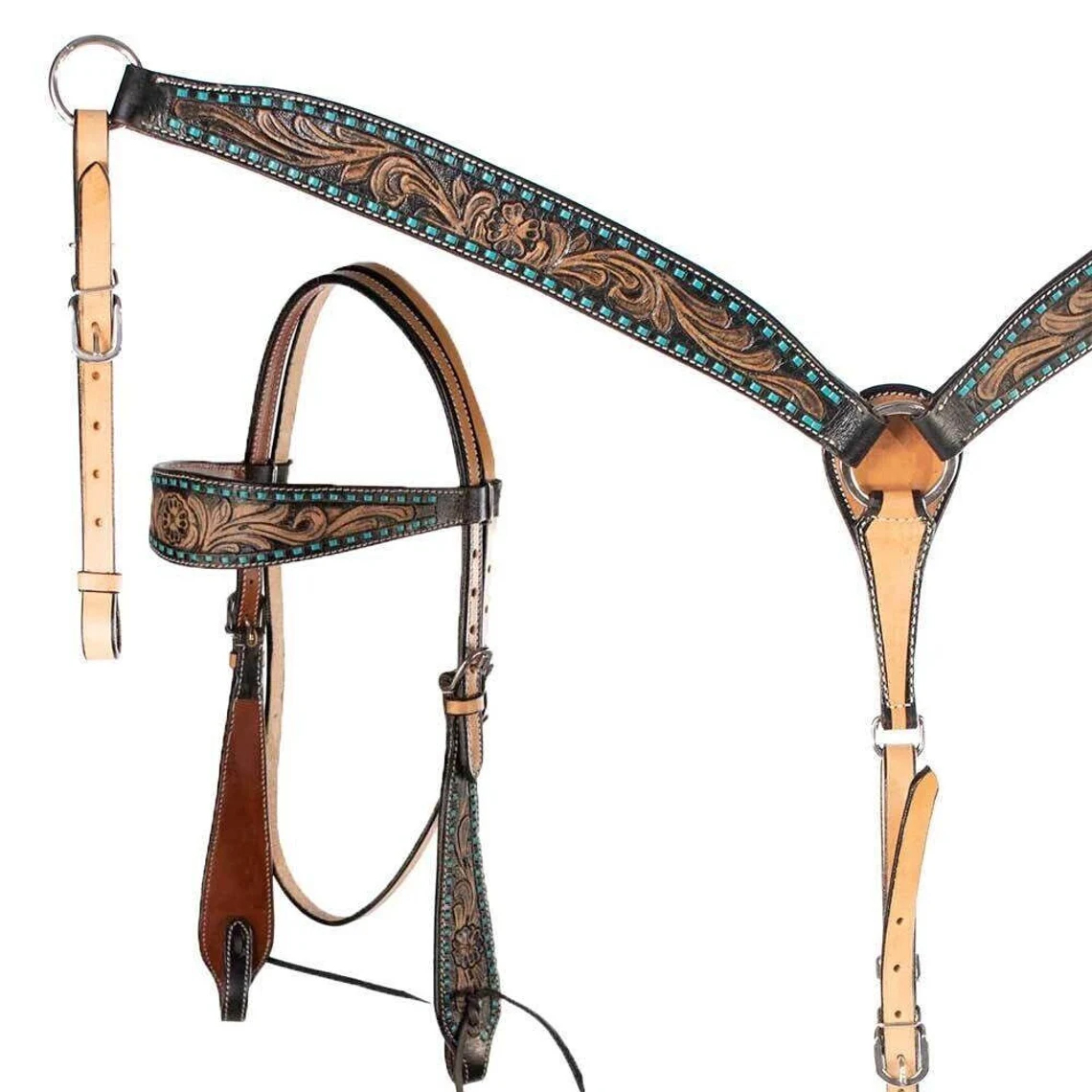 The edges are all hand-dyed and the hardware used is solid Stainless Steel. They are ideal for a standard-size horse headstall breast collar for horses western and have some room for adjustments.
