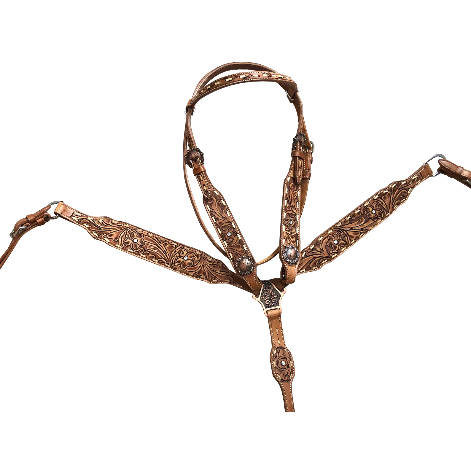 Western Horse Headstall Breast Collar Set Genuine Leather Floral Tooled Handmade