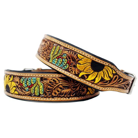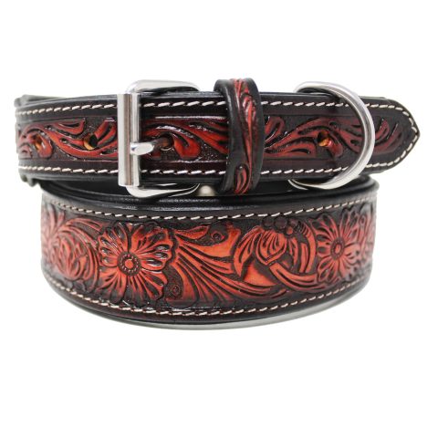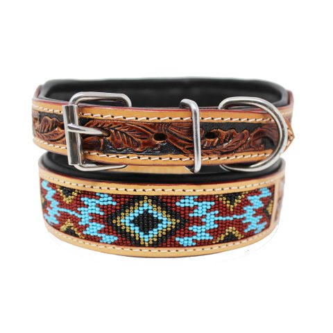 Dog Collar Beaded 100% Leather Heavy Duty Padded Hand Tooled